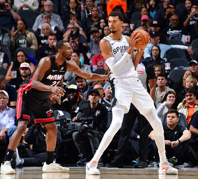 馬刺主場迎戰(zhàn)熱火,馬刺缺少了福克斯、索漢、科內(nèi)特、奧利尼克,戰(zhàn)力折損很大,熱火缺少了鮑威爾、希羅,戰(zhàn)力折損小于馬刺。本賽季熱火狀態(tài)不錯,在揭幕戰(zhàn)惜敗給魔術(shù)后,他們?nèi)〉?連勝,擊敗了灰熊、尼克斯、黃蜂,3場比賽贏了67分,勢頭非常猛,今日熱火給馬刺帶來了很大沖擊,一度壓制馬刺,不過馬刺擁有怪獸球員文班,還有上賽季的最佳新秀卡斯爾,在天賦上馬刺更勝一籌,最終馬刺以107-101擊敗熱火,取得了開賽5連勝。文班23中10砍下27分18板6助5帽,卡斯爾12中7得到21分8板4助4斷,熱火方面阿德巴約27中12得到31分10板3助,威金斯18中11得到24分6板2助2斷。